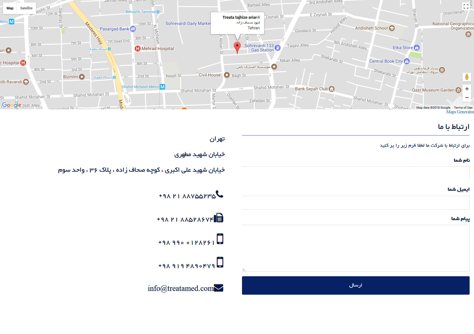 صفحه ی تماس با ما همراه نقشه ی گوگل